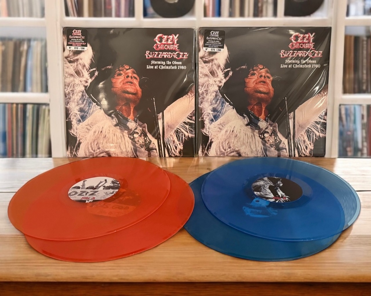 Storming The Odeon is a double LP, available on both red and blue vinyl. Both colors are transparent, but I wouldn’t exactly call them clear. The red is kind of a different, muted looking red, so overall I’d say I like the looks of the blue discs more. Both versions come in a gatefold sleeve, complete with the standard Casino Records numbered hype sticker and resealable bag. As usual, this is a limited release, this time with only 200 copies of each color pressed worldwide. Last time we saw an Ozzy release from these guys, it sold out very quickly with only 150 copies of each color (red and yellow). You can read about Broken Chains and Broken Rules here. In response, the label put out a third version on “clear ice” vinyl with 200 total copies pressed. Whether a second pressing of another color will happen yet again with this current release is unknown, but always a possibility with the enduring popularity of Ozzy.