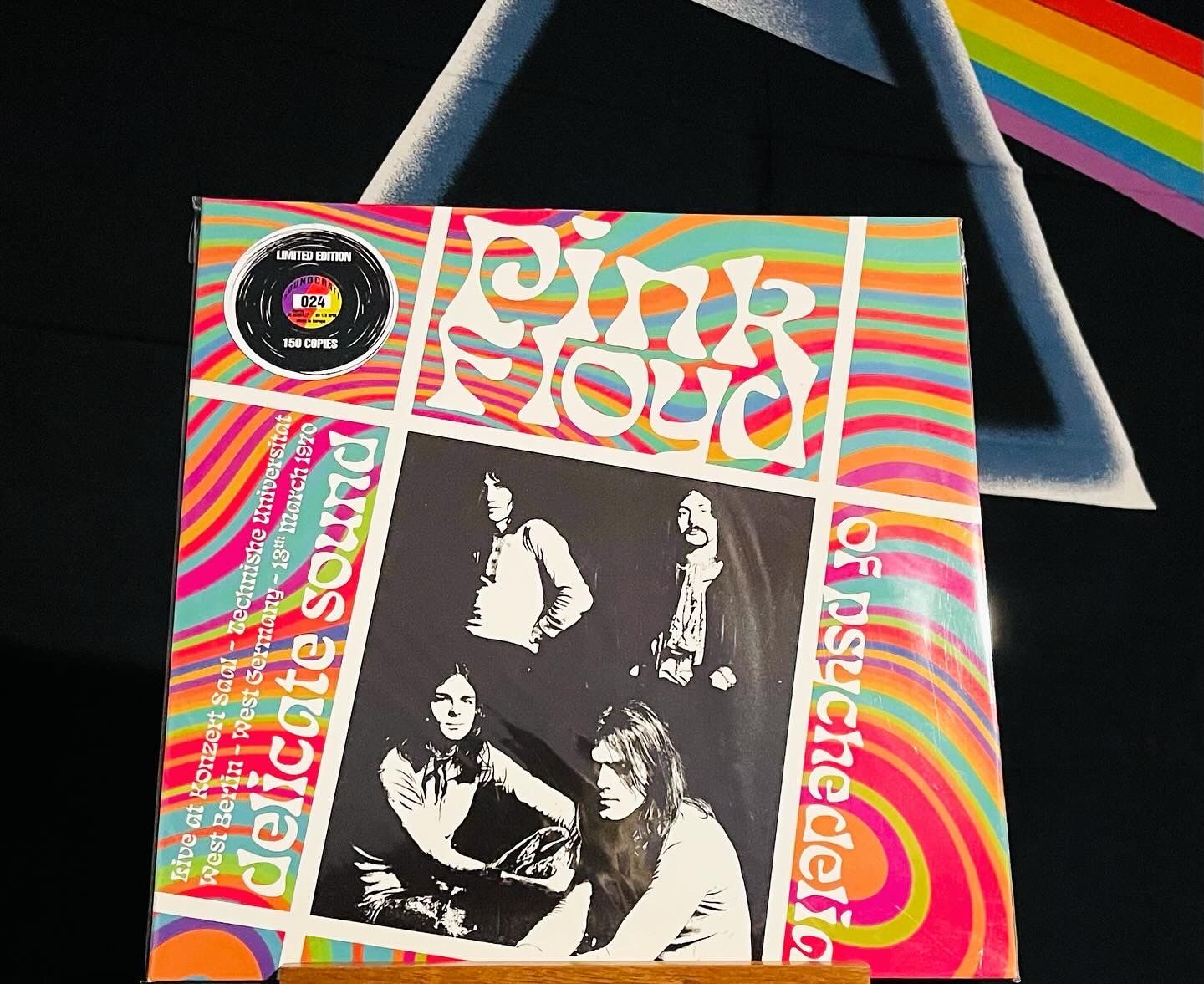 As far as Pink Floyd boots go, this one is a little more on the tame side as far as artwork. It’s so well done though, I could see someone mistaking this for an official release. By their very nature, the quality of bootlegs is a real crapshoot. Some are made really well, and others look like someone has been playing frisbee with them in a gravel parking lot. With a dog. Anyhow, Delicate Sound Of Psychedelia has none of those problems. Released by Soundcraft Records (Europe), this three LP set is pressed on high quality colored vinyl, has a nice heavy 3 way gatefold jacket with excellent artwork and came with good quality, heavy black inner sleeves. The labels on the actual discs are very nice as well, and are clearly marked so you know what music is on what side. This doesn’t always happen with bootleg vinyl, so it’s a plus for sure.